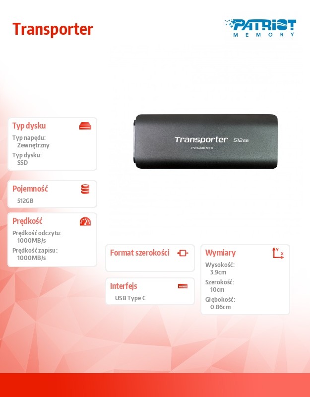 PATRIOT Transporter 512GB dostępny jest w magazynie. Zamów teraz. Wysyłka nawet w 24h.