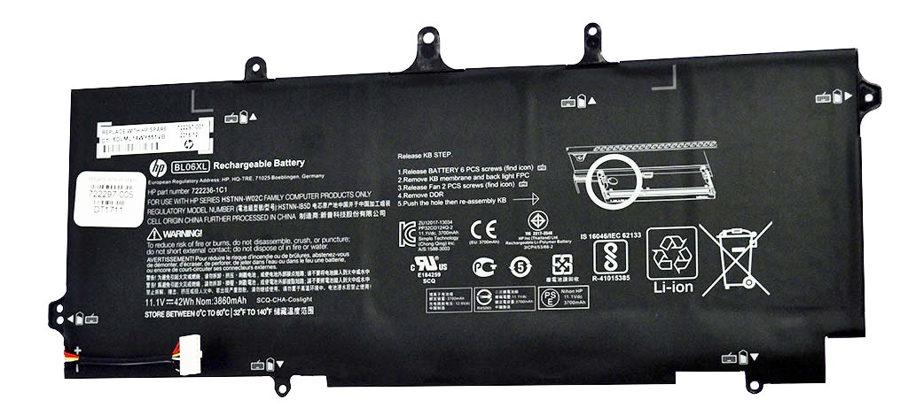 Zastępuje modele: 722236-171, 722236-1C1, 722236-271, 722236-2C1, 722297-001, 722297-005, 723297-001, BL06042XL, BL06042XL-PL, BL06XL, HSTNN-DB5D, HSTNN-IB5D, HSTNN-W02C