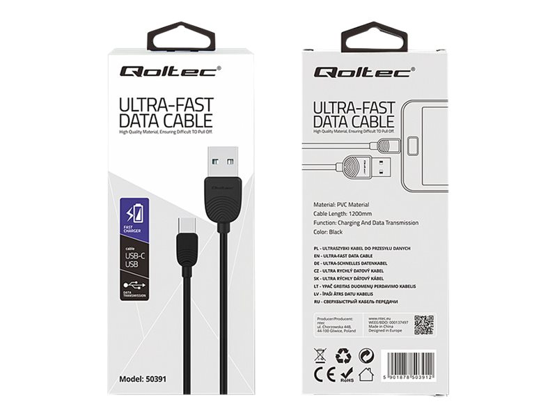Cable QOLTEC Ultra-fast data USB type C USB 2.0 A 1.2 m