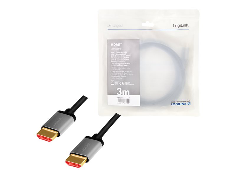 | Charakterystyka | HDMI Ethernet Channel (HEC), Audio Return Channel (ARC), 3D-Transmission, obsługa HDMI CEC (Consumer Electronics Control), Dolby Digital Plus, obsługa HDR, Enhanced Audio Return Channel (eARC), Super Audio CD (SACD), obsługa Dolby Digital, Display Stream Compression (DSC), DVD-Dźwięk, Dolby DTS, obsługa 48 Gb/s, zgodność z HDCP, kabel odpływowy, 12-bitowa głębia koloru, zgodność z x.v.Color (xvYCC), 32 kanały audio, 48-bitowa głębia kolorów, aluminowa obudowa złącza, zgodność z EDID, obsługa wielu nagrań wideo / strumieni wideo na jednym ekranie, częstotliwość próbkowania dźwięku 1536 kHz |