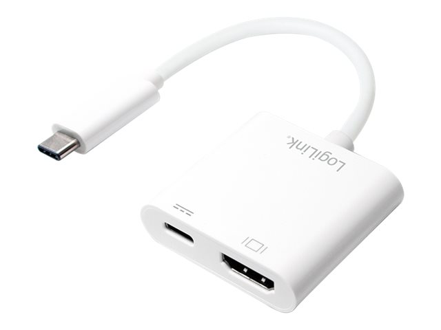 | Adapter do ładowania USB-C na HDMI umożliwia podłączenie MacBooka z portem USB-C do wyświetlacza HDMI, a jednocześnie do kabla ładującego USB-C. | |