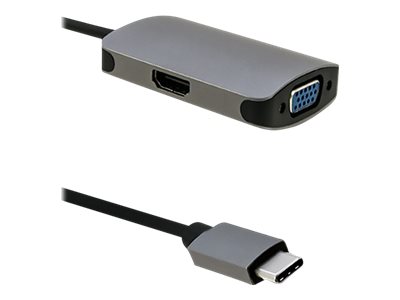 | Adapter umożliwia przysyłanie sygnału z/do takich urządzeń głównych jak laptop, tablet, smartfon za pomocą zintegrowanego kabla z wtyczką USB-C. Gniazdo HDMI pozwala na podłączenie monitora lub projektora umożliwiając oglądanie z urządzenia głównego multimediów na większym ekranie. Złącze VGA zagwarantuje tych samych ekranów co HDMI, ale posiadających gniazdo w standardzie analogowym, umożliwiającym przeniesienie obrazu. Dzięki temu, laptop, smartfon czy tablet stanie się bardziej rozbudowanym centrum multimedialnym. Dużą zaletą USB-C jest możliwość szybkiego przesyłania danych. W zależności od obsługi standardów, za pomocą USB-C można przesyłać również dźwięk i obraz. Poprzez standard Plug&Play produkt doskonale dopasuje się do Twojego urządzenia. Jego lekkość i poręczność pozwala Ci mieć urządzenie zawsze przy sobie. Adapter został zaprojektowany w oparciu o nowoczesny, minimalistyczny design. | |