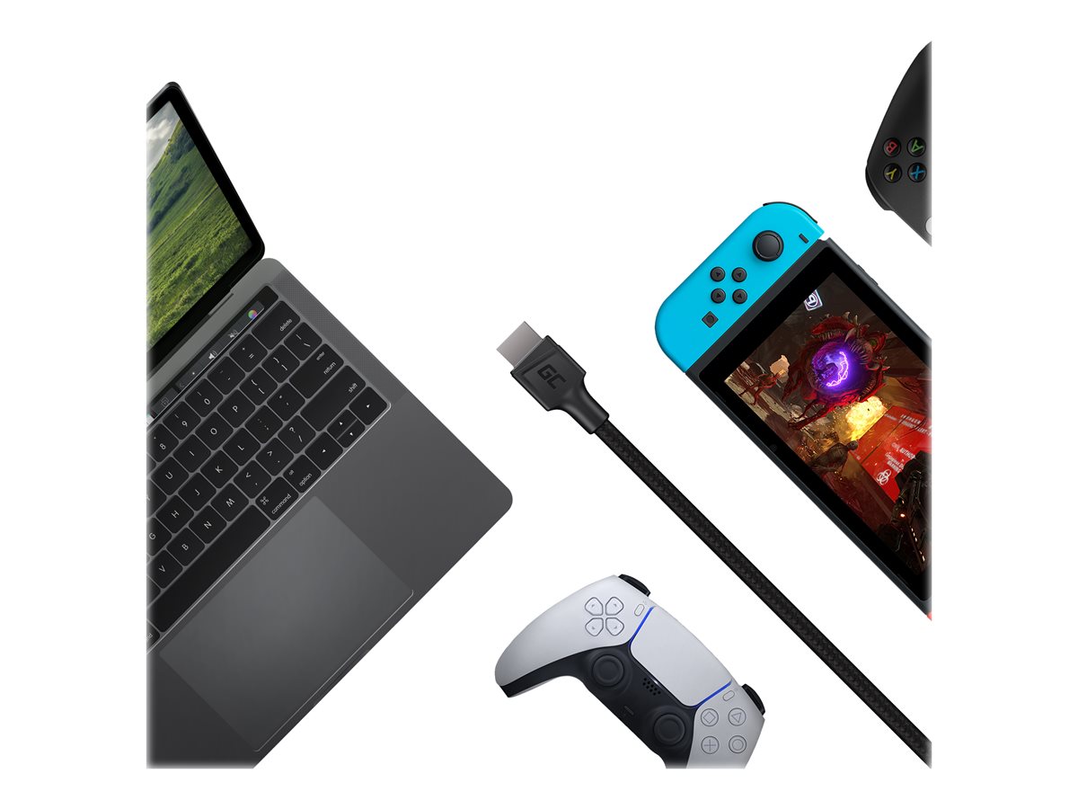 | Charakterystyka | Owijka pleciona, HDMI Ethernet Channel (HEC), Audio Return Channel (ARC), 3D-Transmission, obsługa HDMI CEC (Consumer Electronics Control), obsługa HDR, obsługa Dolby Atmos, obsługa HDR10, obsługa Dolby DTS:X, Dolby Vision, zapamiętywanie kształtu, zgodność z HDCP, złącze wzmacniane, 4k(2160p)@60 Hz / 1440p@144 Hz / 1080p@240 Hz, odporność na uszkodzenia |
