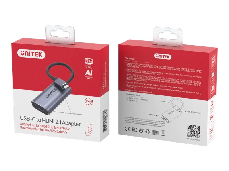 | Charakterystyka | Obsługa HDR, 3D-Transmission, Auto Low Latency Mode (ALLM), Variable Refresh Rate (VRR), obsługa DisplayPort Alternate Mode, obudowa aluminiowa, zgodność z HDCP, paczka prezentowa |