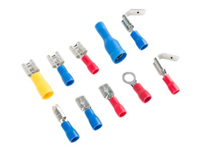 | Zestaw 100szt konektorów do kabli, róźne rodzaje w pudełku razem z zaciskarką. | |