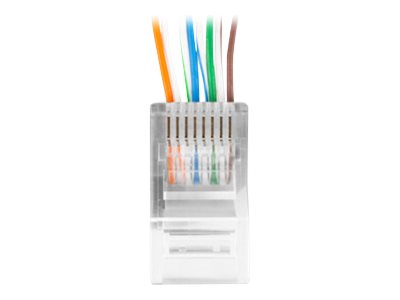 | Zestaw 20 szt. nieekranowanych przelotowych wtyków sieciowych RJ-45 [8P8C] kat.5E, przeznaczonych głównie do kabli LAN UTP. Średnica otworu (dla przewodnika z HDPE): 1.00 +- 0.07 mm. | |