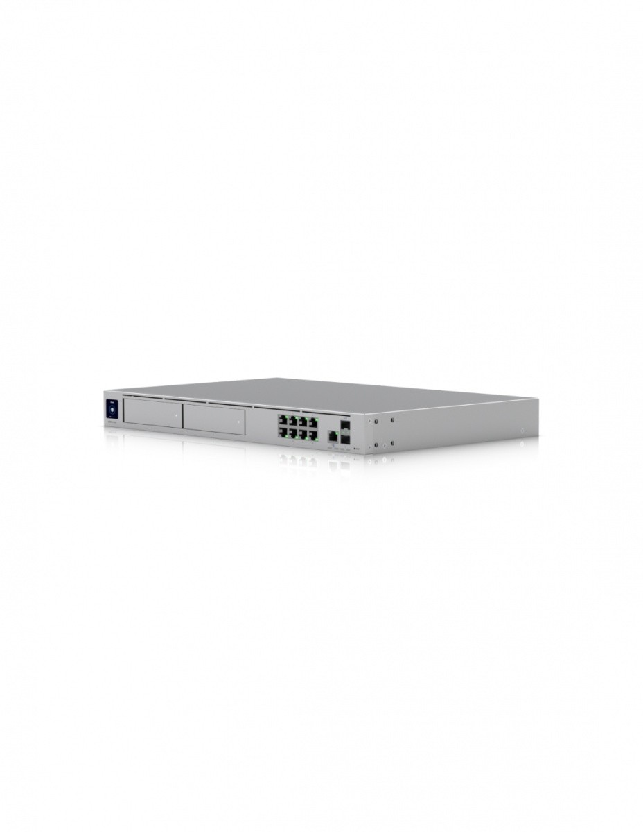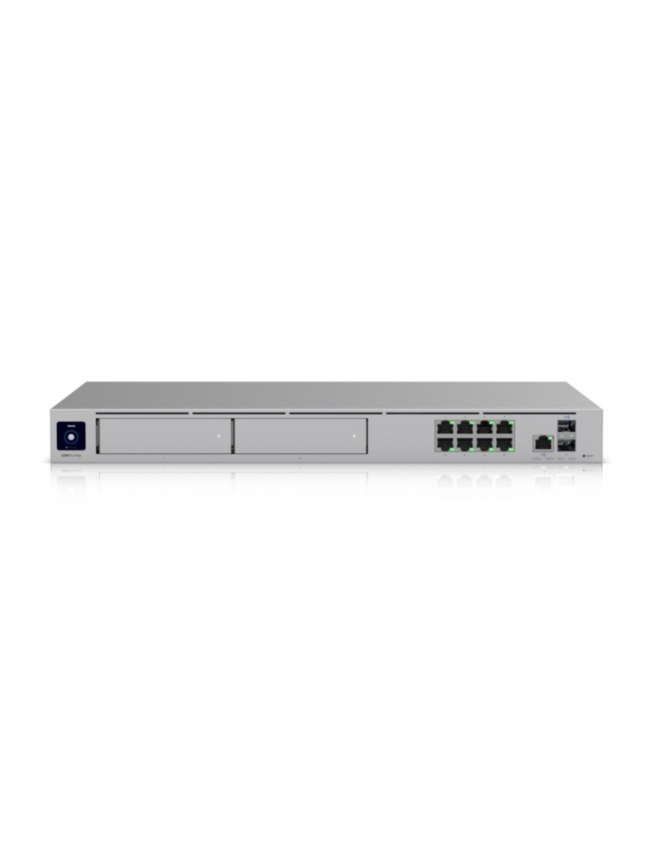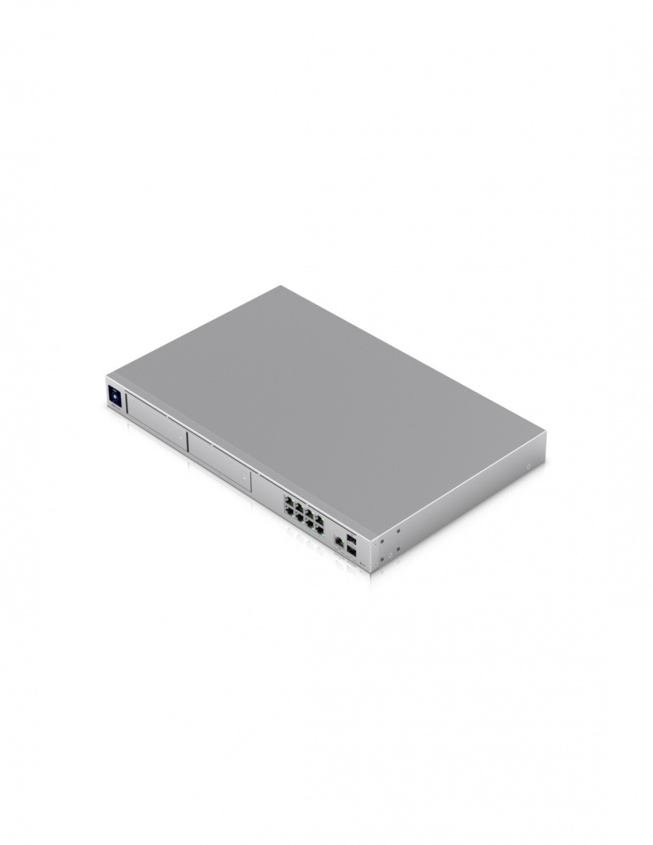 Dream Machine Pro Max Dream Machine Pro Max (UDM-Pro-Max) to zaawansowana brama chmurowa o przepustowości 10 Gb/s, zdolna obsłużyć ponad 200 urządzeń UniFi i ponad 2000 klientów. Posiada routing IPS o szybkości 5 Gb/s oraz nadmiarową pamięć masową NVR. Zwiększona moc obliczeniowa i pamięć zapewnia dwukrotnie większą wydajność niż standardowe urządzenia UniFi. Zawiera pełny pakiet aplikacji UniFi do zarządzania urządzeniami. Wyposażona w porty 10G SFP+ i porty LAN GbE RJ45, a także porty 2,5 GbE RJ45 WAN. Posiada dwa miejsca na dyski twarde 3,5" NVR z ochroną danych RAID oraz wbudowany dysk SSD 128 GB do nagrań z detekcji NVR. Wyposażona w ekran dotykowy o przekątnej 1,3 cala.