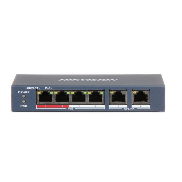 Przedstawiamy DS-3E0106P-E/M(O-STD) doskonałe rozwiązanie sieciowe dedykowane małym i średnim firmom. Wyposażone w 4 porty PoE 10/100Mb/s oraz 2 porty RJ45 10/100Mb/s, to urządzenie zapewnia niezawodny i wydajny sposób zasilania oraz podłączania urządzeń sieciowych. Wyjątkową cechą tego przełącznika jest jego zgodność ze standardem IEEE 802.3at/af dla portów PoE, umożliwiającą uzyskanie maksymalnej mocy 35 W PoE.