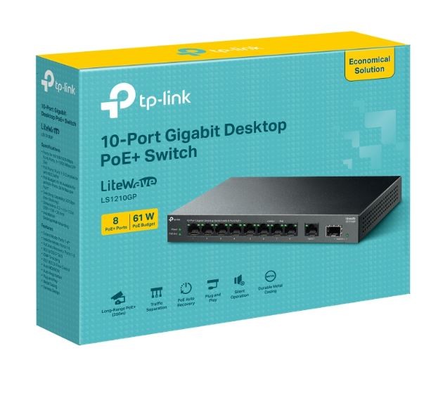 - Budżet PoE 61 W: Osiem gigabitowych portów PoE+ zgodnych z 802.3af/at łatwo łączy i zasila urządzenia stacjonarne, takie jak kamery IP, punkty dostępowe i telefony IP za pomocą jednego kabla. Każdy port PoE obsługuje do 30 W mocy wyjściowej PoE.