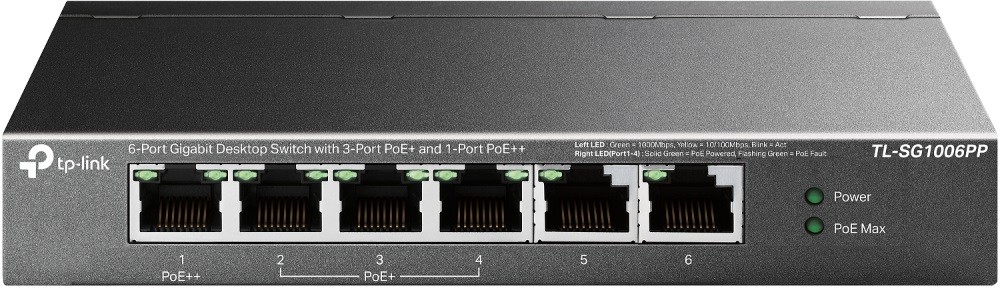 Gigabitowy przełącznik typu Desktop, 6 portów, w tym 3 porty PoE+ i 1 port PoE++
