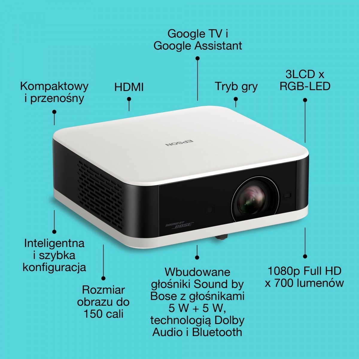 - Full HD, 700 lumenów, nawet 3-krotnie jaśniejszy obraz: oszałamiająca grafika oparta na technologii 3LCD × RGB-LED firmy Epson zapewnia żywsze obrazy.
