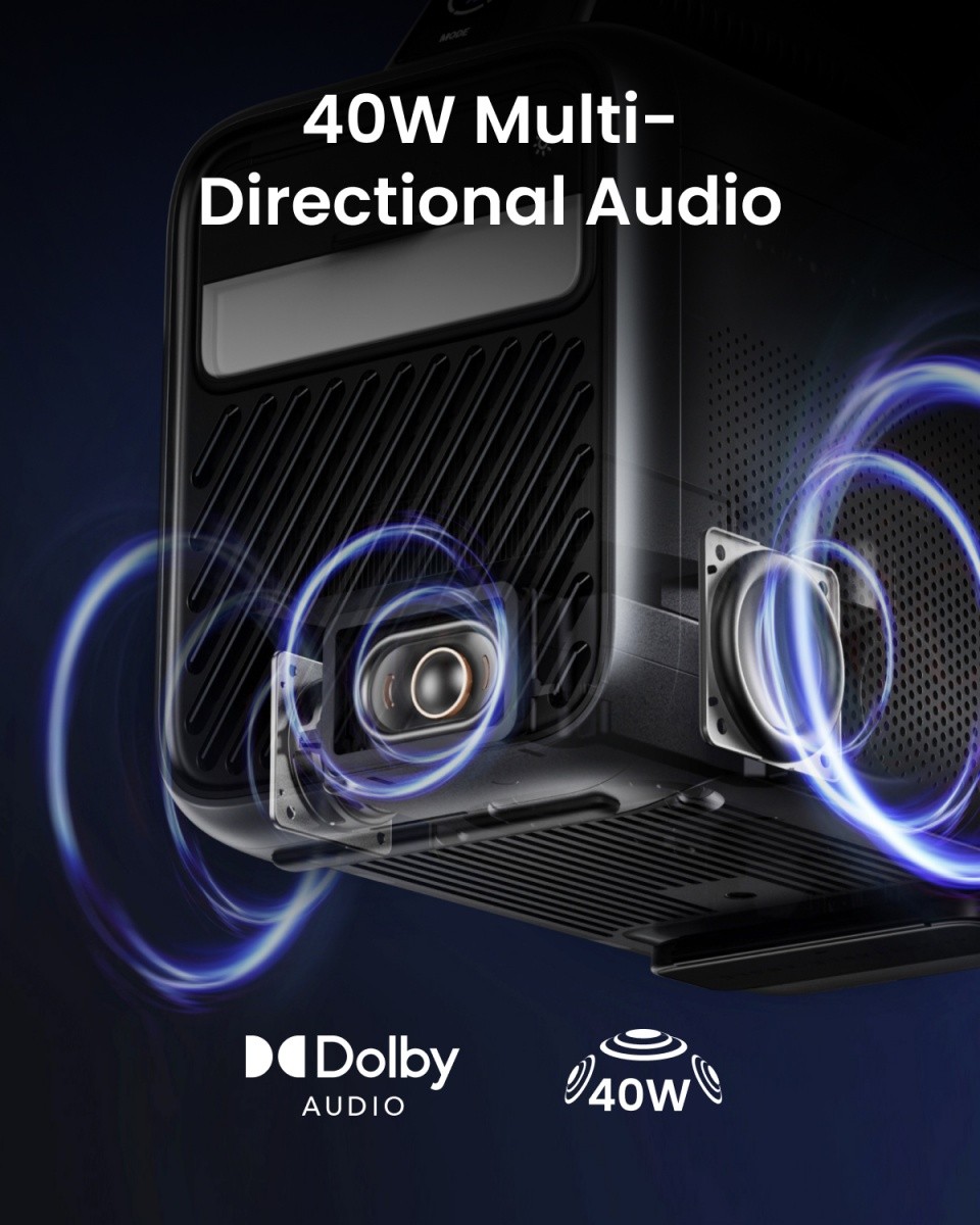 Wbudowany głośnik 40 W z Dolby Digital Plus zapewnia wyraźny i wciągający dźwięk na zewnątrz, dzięki czemu filmy brzmią niesamowicie, a muzyka brzmi czysto i wyraźnie, nawet przez 15 godzin odtwarzania.