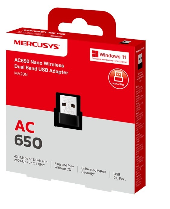 MA20N Dwupasmowa, bezprzewodowa, nano karta sieciowa USB, AC650