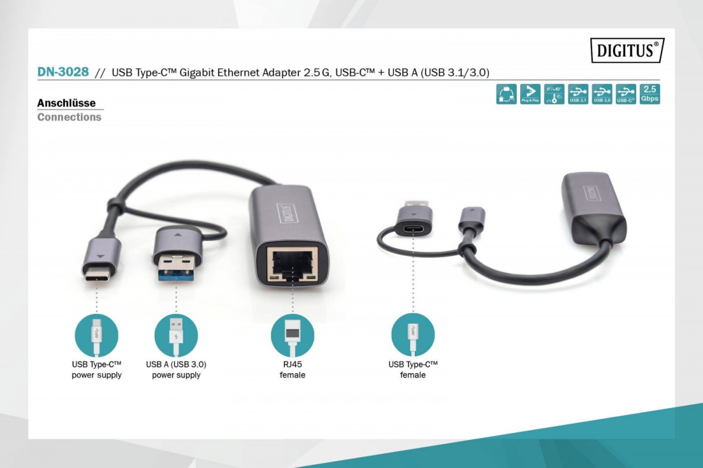 Przy użyciu adaptera USB Type-C na Gigabit Ethernet można rozszerzyć możliwości swojego notebooka lub komputera stacjonarnego o gniazdo sieciowe zapewniające prędkości do 2,5 Gbps. Plug and Play funkcjonuje od razu po podłączeniu. Zasilanie jest dostarczane za pośrednictwem interfejsu USB-C. Zawarty w zestawie adapter USB A umożliwia użytkowanie z gniazdami USB poprzednich generacji, korzystając z kompatybilności wstecz do standardu USB 3.0 i wcześniejszych. Adapter jest kompatybilny z systemami Windows, macOS, Linux, Android oraz iOS. Nadaje się do rozgrywki internetowej, strumieniowania na żywo, zastosowań wideo w 4K, a także wszelkich innych zastosowań wymagających wysokiej przepustowości sieci i optymalnej wydajności. Dzięki swoim kompaktowym wymiarom adapter jest również idealnym towarzyszem w podróży. Całości dopełnia elegancka i wytrzymała obudowa z aluminium z bocznymi otworami do lepszego odprowadzania ciepła i wyższej wydajności.