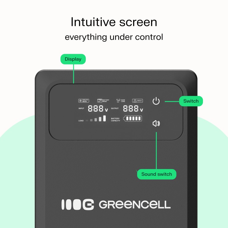 - Czytelny wyświetlacz LCD informujący o stanie urządzenia i poziomie naładowania akumulatora. Fizyczny przełącznik wyciszenia pozwala szybko wyłączyć alarm dźwiękowy, a wymienny bezpiecznik można łatwo wymienić bez otwierania obudowy.
