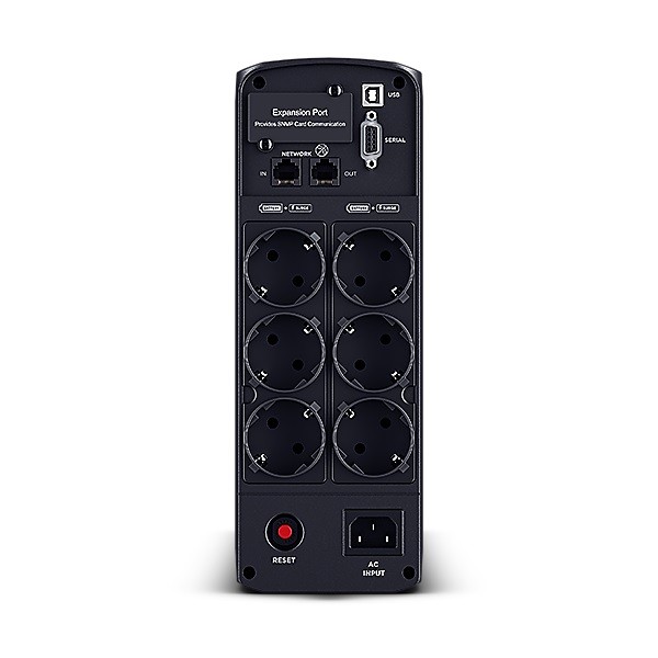 CyberPower CP1350EPFCLCD z czystą sinusoidą na wyjściu zabezpiecza średniej i wysokiej klasy systemy komputerowe, serwery i sprzęt sieciowy wykorzystujące zasilacze konwencjonalne i zasilacze z aktywną korekcją współczynnika mocy (PFC). Zaprojektowane z wykorzystaniem technologii GreenPower UPS w celu poprawy wydajności operacyjnej i zminimalizowania zużycia energii, ten UPS zapewnia znaczne oszczędności kosztów energii w porównaniu z konwencjonalnymi systemami UPS. Zasilacz UPS zapewnia automatyczną regulację napięcia (AVR), aby utrzymać stabilne napięcie podłączonego sprzętu. Produkt posiada ochronę linii danych z szybką transmisją, aby chronić sprzęt komunikacyjny przed przepięciami/skokami, a także zapewnia prędkość transmisji danych 1 Gb/s. Dzięki odchylanemu, kolorowemu panelowi LCD użytkownicy mogą z łatwością monitorować najważniejsze informacje o zasilaniu i akumulatorze. Oprogramowanie do zarządzania energią PowerPanel umożliwia użytkownikowi monitorowanie i konfigurację w czasie rzeczywistym.