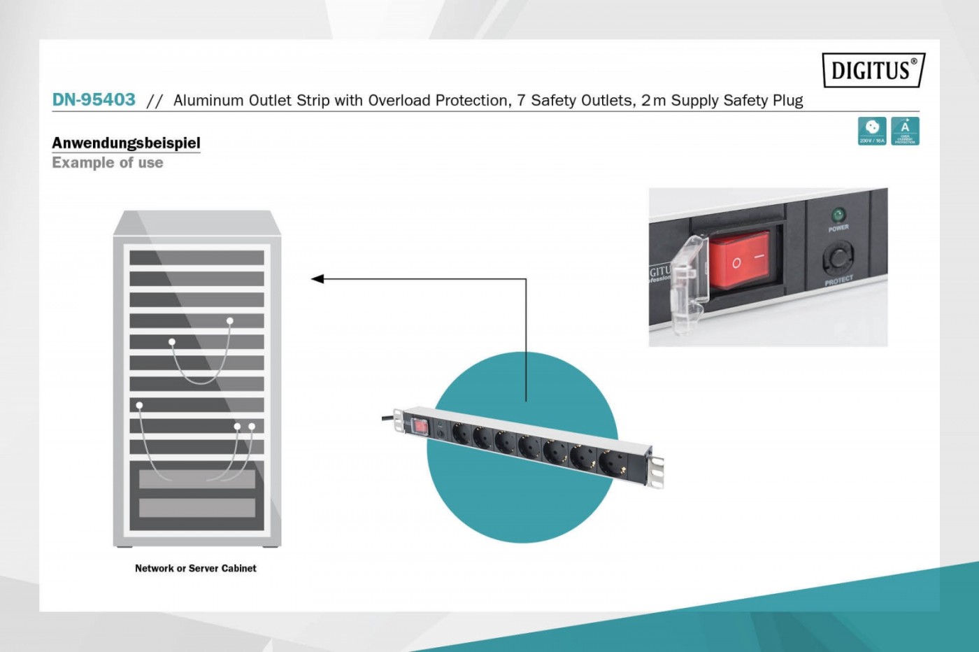 Listwy zasilające firmy DIGITUS to perfekcyjne rozwiązanie do szaf sieciowych i serwerowych 482.6 mm (19"). Są zoptymalizowane pod kątem montażu w szafach, a ich parametry zasilania 220240 V przy 5060 Hz zapewniają najlepszą sprawność przy odpowiednim stopniu wykorzystania. Zawarty w zakresie dostawy materiał montażowy 482.6 mm (19") zapewnia optymalne zamocowanie na profilach montażowych szaf. Każdą listwę zasilającą można montować w poziomie lub w pionie; w zależności od typu szafy istnieje również możliwość zamocowania listwy zasilającej gniazdami do góry lub do dołu.