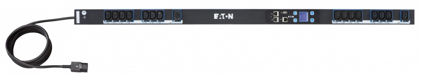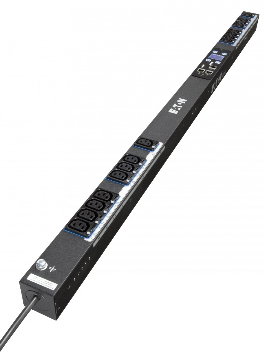 Eaton ePDU 3G zarządzalne – Zalety: - Możliwość bezpiecznego sterowania i zdalne ponowne uruchamianie - Możliwość wykonywania pomiarów w liniach zasilania A i B na poziomie urządzenia - Pomiar na wejściu i każdej z faz, pomiar prądu na wyłączniku obwodu, monitorowanie stanu wyłączników obwodów - Pomiary PUE poziomu 3 - Wyłączanie i załączenie oraz pomiary na urządzeniach w obydwu liniach zasilających A i B (wymaga połączenia łańcuchowego jednostek ePDU) - Sekwencyjne załączanie gniazd chroniące przed dużymi prądami rozruchowymi, zapewniające uruchamianie urządzeń w odpowiedniej kolejności - Wysokie bezpieczeństwo z kontrolą dostępu dla użytkownika, ochrona hasłem i konfiguracja SSL dla 1024 lub 2048 bitów - Blokada wtyczek eGrip dla gniazd IEC: blokuje wszystkie standardowe wtyczki IEC - Temperatura pracy 60 stopni C - Oznaczenie kolorami gniazd i gałęzi obwodów dla łatwego zbalansowania podziału obciążenia - Wyłączniki hydrauliczno-magnetyczne Eaton z ochroną przed przypadkowym wyłączeniem - Nisko-profilowa obudowa: 52 mm szerokości x 53 mm głębokości w większości modeli - Masowa konfiguracja i aktualizacja dostępne poprzez oprogramowanie Intelligent Power Manager - Monitorowanie na jednym ekranie wielu jednostek ePDU + UPS, stanowiących element łańcucha zasilania, prawidłowe zamykanie urządzeń poprzez oprogramowanie Intelligent Power Manager - Montaż: zaczepy guzikowe z tyłu i z boku + uniwersalny system montażowy ePDU G3 może być wykorzystane razem z oprogramowanie Intelligent Power Manager do wyzwalania migracji VM lub akcji menadżera odzyskiwania danych w obiekcie (SRM) firmy VMware w oparciu o konfigurowalne przez użytkownika alarmy w ePDU, włącznie z ostrzeżeniami o przekroczeniu limitów lub ostrzeżenia dotyczące temperatury czy wilgotności.