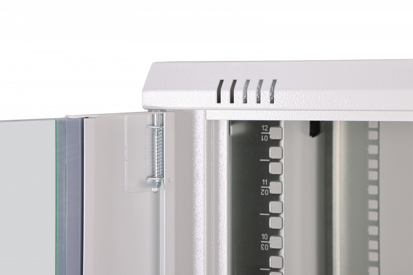Szafy sieciowe serii Dynamic-N do montażu naściennego zostały opracowane z myślą o prostej i szczególnie ekonomicznej rozbudowie sieci. Dach, podstawa i tylny panel każdej obudowy są wyposażone we wstępnie wycięte wloty kablowe. Obudowa dachowa jest również wyposażona w otwór na moduł wentylatora. Wewnątrz zainstalowano dwie pary ocynkowanych szyn profilowych 483 mm (19"), oznaczonych jednostkami wysokości, które można odczytać w obu kierunkach. Ich głębokość można regulować. Każda obudowa ma solidną stalową konstrukcję wykonaną z blachy stalowej o grubości do 1,2 mm. Kolorystyka ma postać elektrostatycznego malowania proszkowego w standardowych kolorach szarym (RAL 7035) i czarnym (RAL 9005). Zdejmowane panele boczne oraz zamykane i zdejmowane drzwi przednie poprawiają dostępność. Zawiasy drzwi można wymienić. Montaż na ścianie odbywa się w dwóch prostych krokach: dostarczoną płytę montażową przykręca się do ściany, a następnie łączy z obudową. Aby uprościć logistykę, seria Dynamic-N jest dostarczana w stanie niezmontowanym w płaskim opakowaniu zajmującym niewiele miejsca. Obudowę naścienną można szybko i łatwo zamontować, korzystając z dołączonej instrukcji montażu.