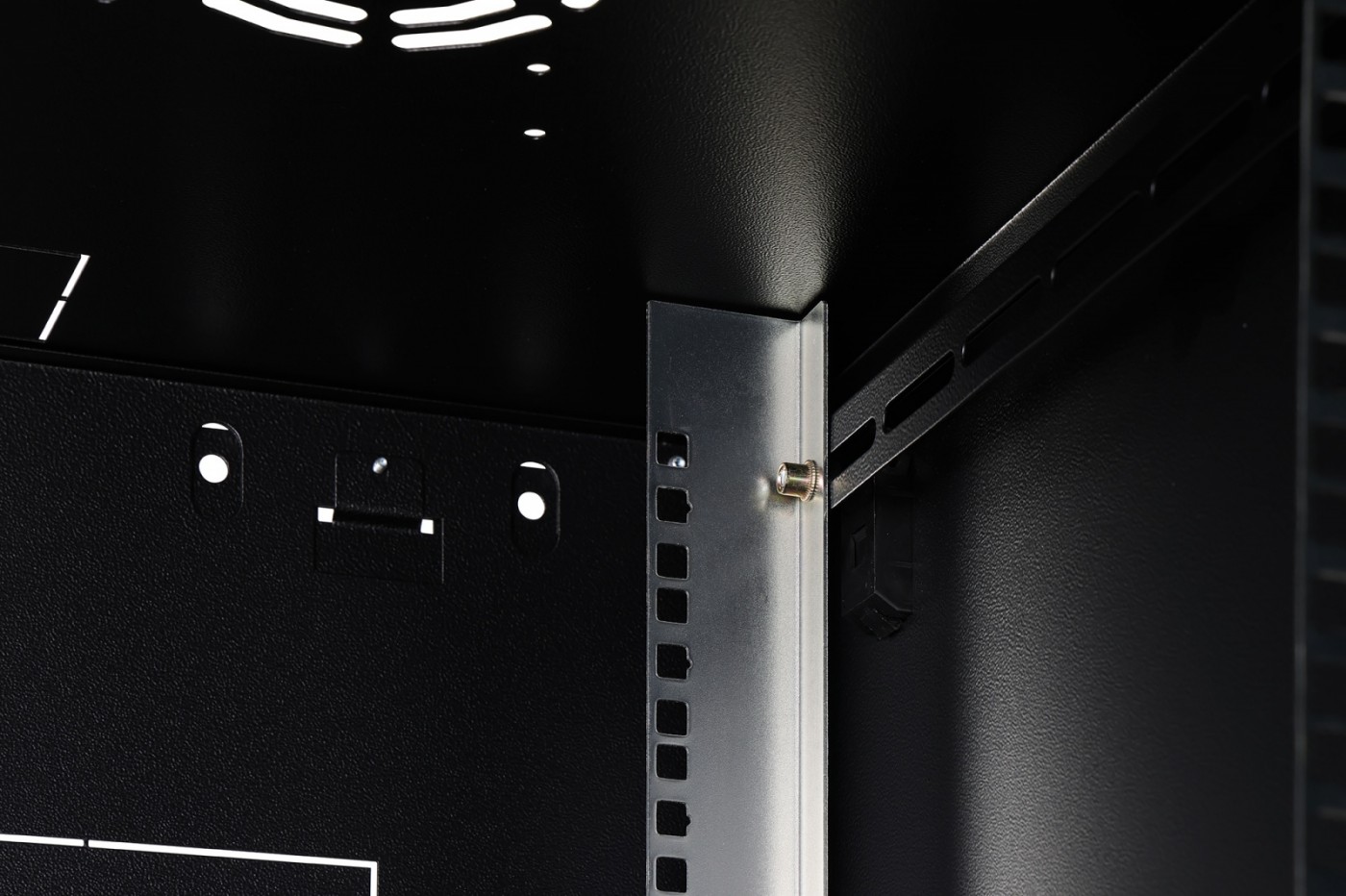 - Szyny profilowe 483 mm (19") z przodu i z tyłu wewnątrz obudowy, ocynkowane