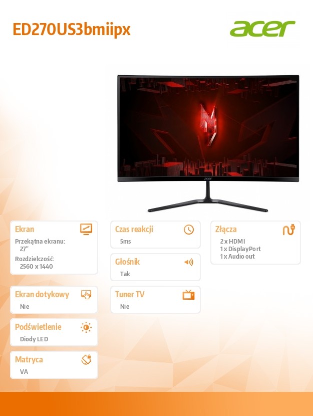 | Dane producenta | ACER Computer GmbH Kornkamp 4 22926 AHRENSBURG, DE https://www.acer.com/us-en/about/contacts |