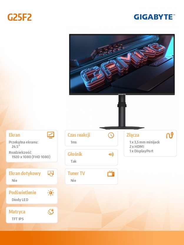 Gigabyte Monitor 25 dostępny jest w magazynie. Zamów teraz. Wysyłka nawet w 24h.