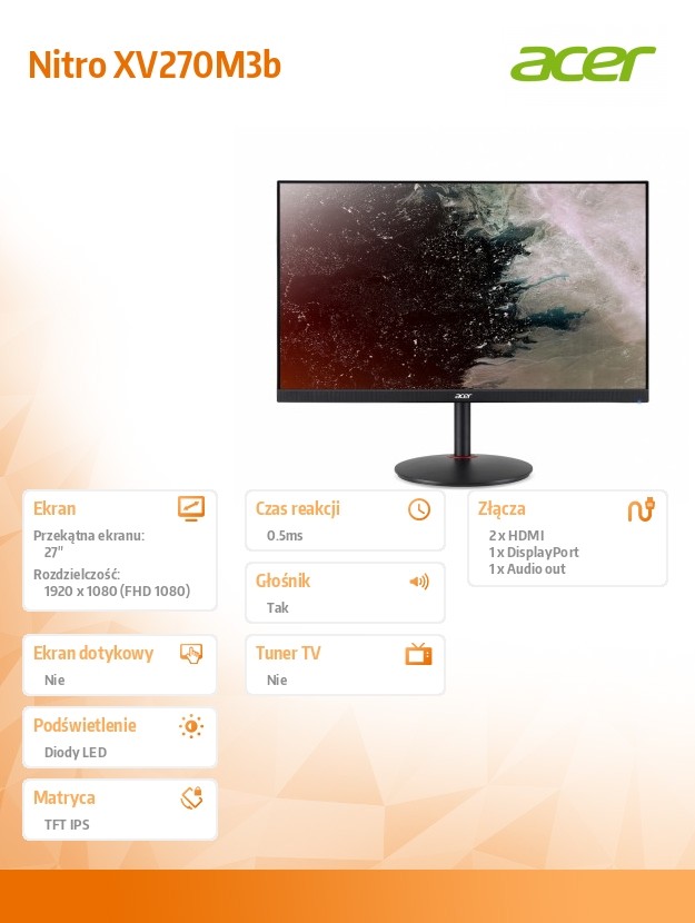 Acer Monitor 27 dostępny jest na indywidualne zamówienie. Zapytaj o termin dostawy
