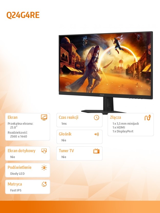 AOC Monitor Q24G4RE dostępny jest na indywidualne zamówienie. Zapytaj o termin dostawy