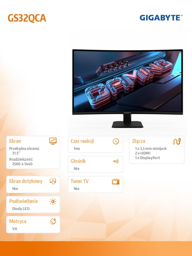 Gigabyte Monitor 31.5 dostępny jest w magazynie. Zamów teraz. Wysyłka nawet w 24h.