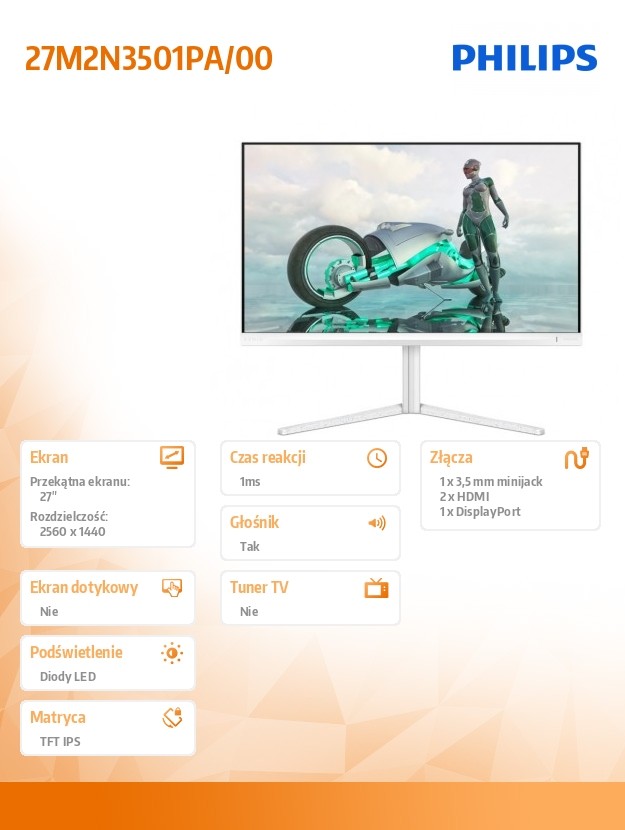 Philips Monitor 27M2N3501PA dostępny jest w magazynie. Zamów teraz. Wysyłka nawet w 24h.