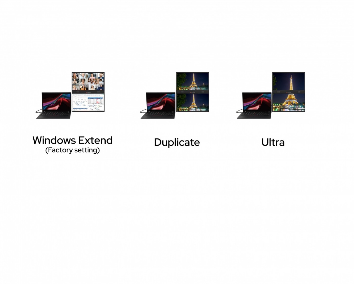 - Tryby wyświetlania: Rozszerzony, powielony, ultra