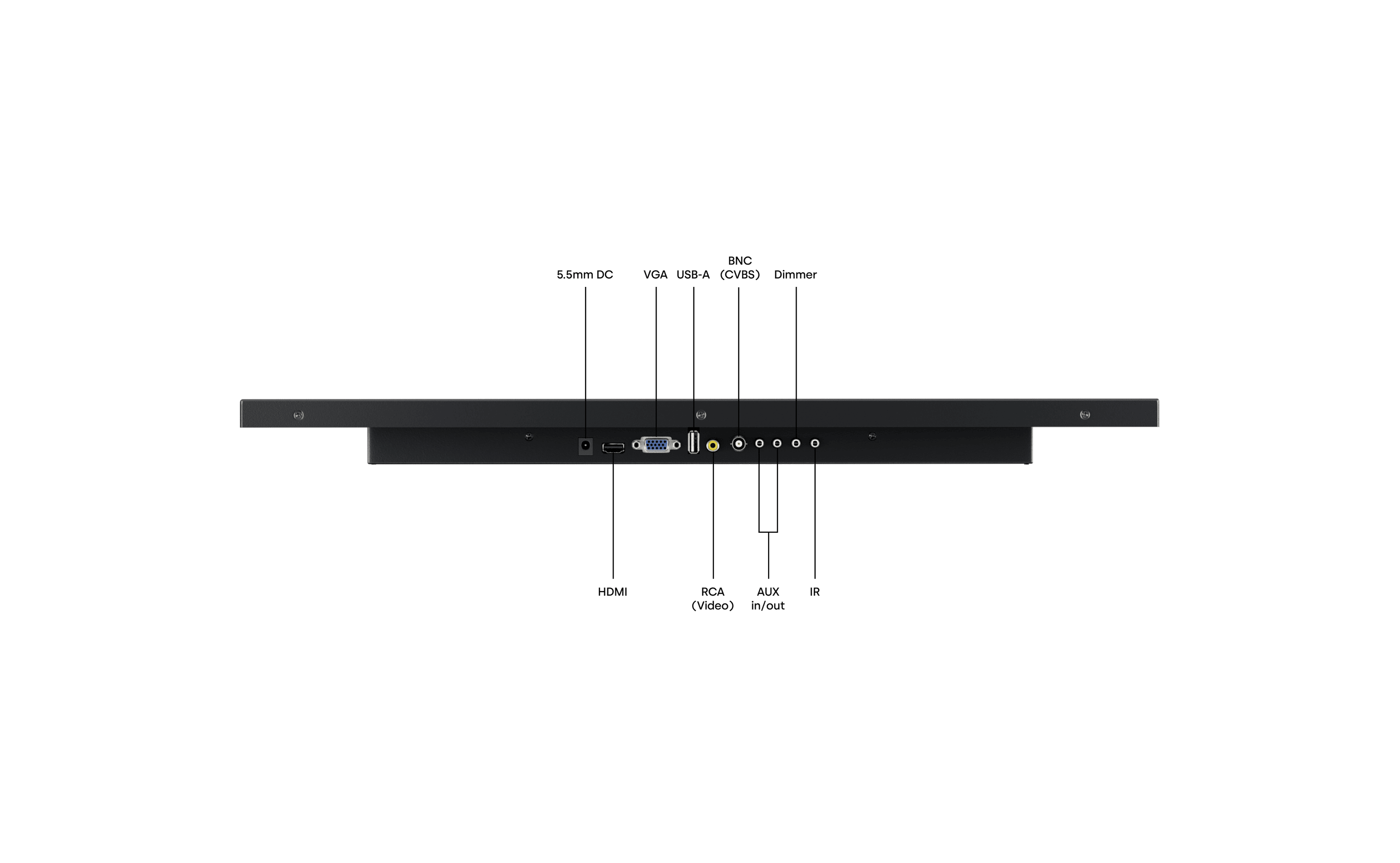 Model 27HD7M posiada gniazda HDMI, VGA, BNC i RCA. Skierowane w dół złącza ulokowane są w tylnej części monitora, co pozwala na łatwy montaż w dowolnej konfiguracji. Monitor można skonfigurować tak, aby włączał się automatycznie, kiedy wykryje prąd lub sygnał wideo.
