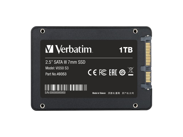 Dyski półprzewodnikowe Verbatim 2,5 cala SATA III 7 mm mogą ożywić działanie systemu. Korzystając z najnowszej technologii 3D NAND, oferują idealny sposób na modernizację systemu opartego na dysku HDD lub starszym dysku SSD. Model Vi550 posiada znacznie lepszy kontroler, co zapewniaj większą trwałość, pojemność i wyższą prędkość zapisu i odczytu. Przedłuż żywotność laptopa lub komputera Tchnij nowe życie w starszy system, wymieniając wysłużone dyski HDD lub starsze dyski SSD 2D NAND na nowy model Vi550 S3 SSD. Dysk Vi550 oferuje prędkość odczytu do 560 MB/s, czyli nawet 20 razy większą od standardowego dysku twardego. Współczynnik MTBF (średni czas przed wystąpieniem awarii) wynosi 2 miliony godzin, a TBW (łączna ilość zapisanych bajtów) to 480 TB przy pojemności 1 TB, dzięki czemu model Vi550 to niezawodny dysk SSD o bardzo dobrych parametrach. Zalecana profesjonalna instalacja. Lepsza wydajność Szybkie układy 3D NAND Flash w połączeniu z kontrolerem najnowszej generacji poprawią czasy reakcji systemu. Szybsze uruchamianie, wyłączanie, czas wczytywania i płynna obsługa wielu zadań przekładają się na większą wydajność systemu. Wytrzymałość i niezawodność Dyski SSD firmy Verbatim nie posiadają ruchomych części złożonych z delikatnych podzespołów, dlatego w przeciwieństwie do dysków twardych są odporne na wstrząsy i uderzenia. Chłodne i efektywne Ponieważ dyski SSD Verbatim są ciche i generują mniej ciepła od dysków twardych, Twój laptop będzie działał dłużej na jednym ładowaniu.