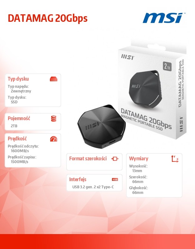 MSI Dysk zewnętrzny dostępny jest na indywidualne zamówienie. Zapytaj o termin dostawy