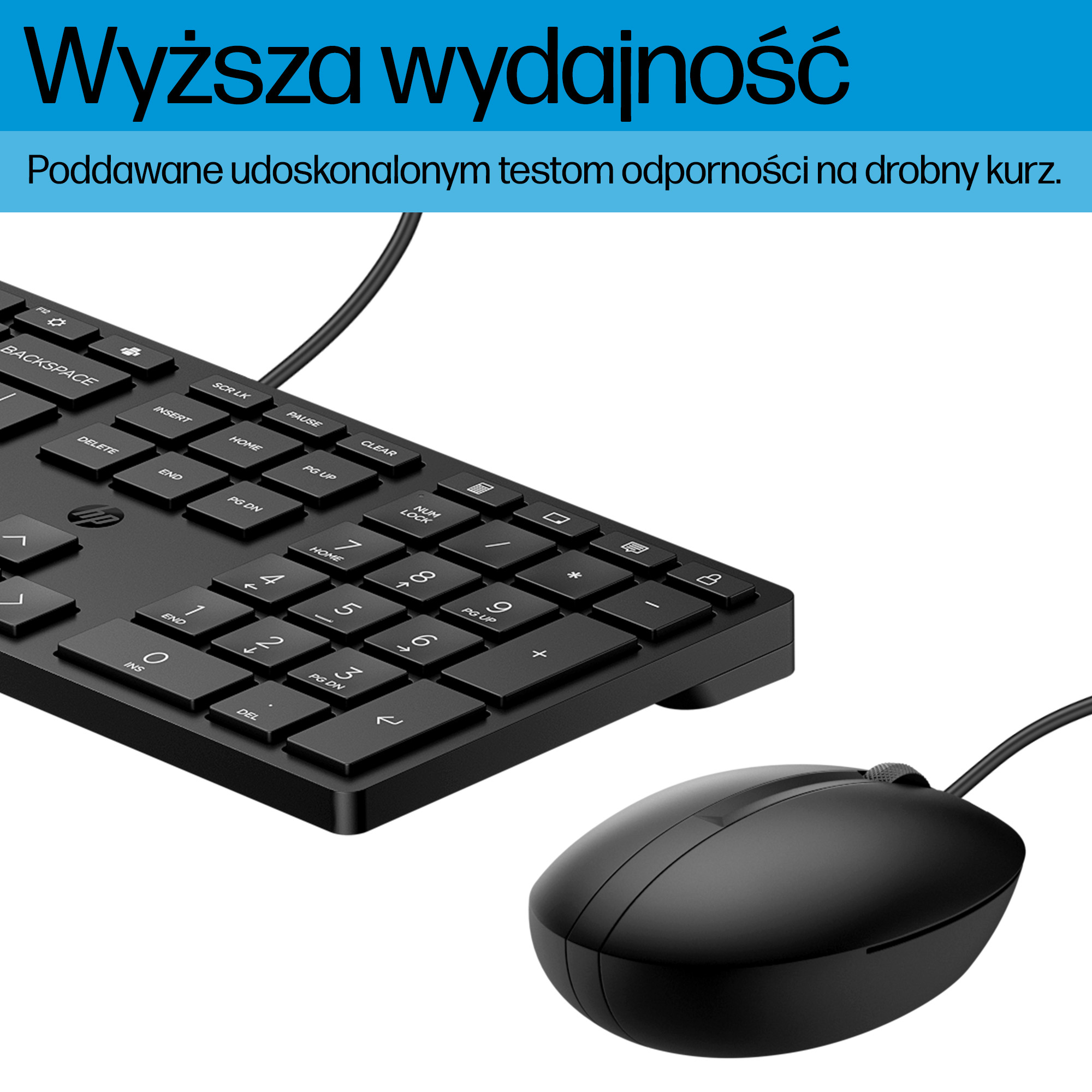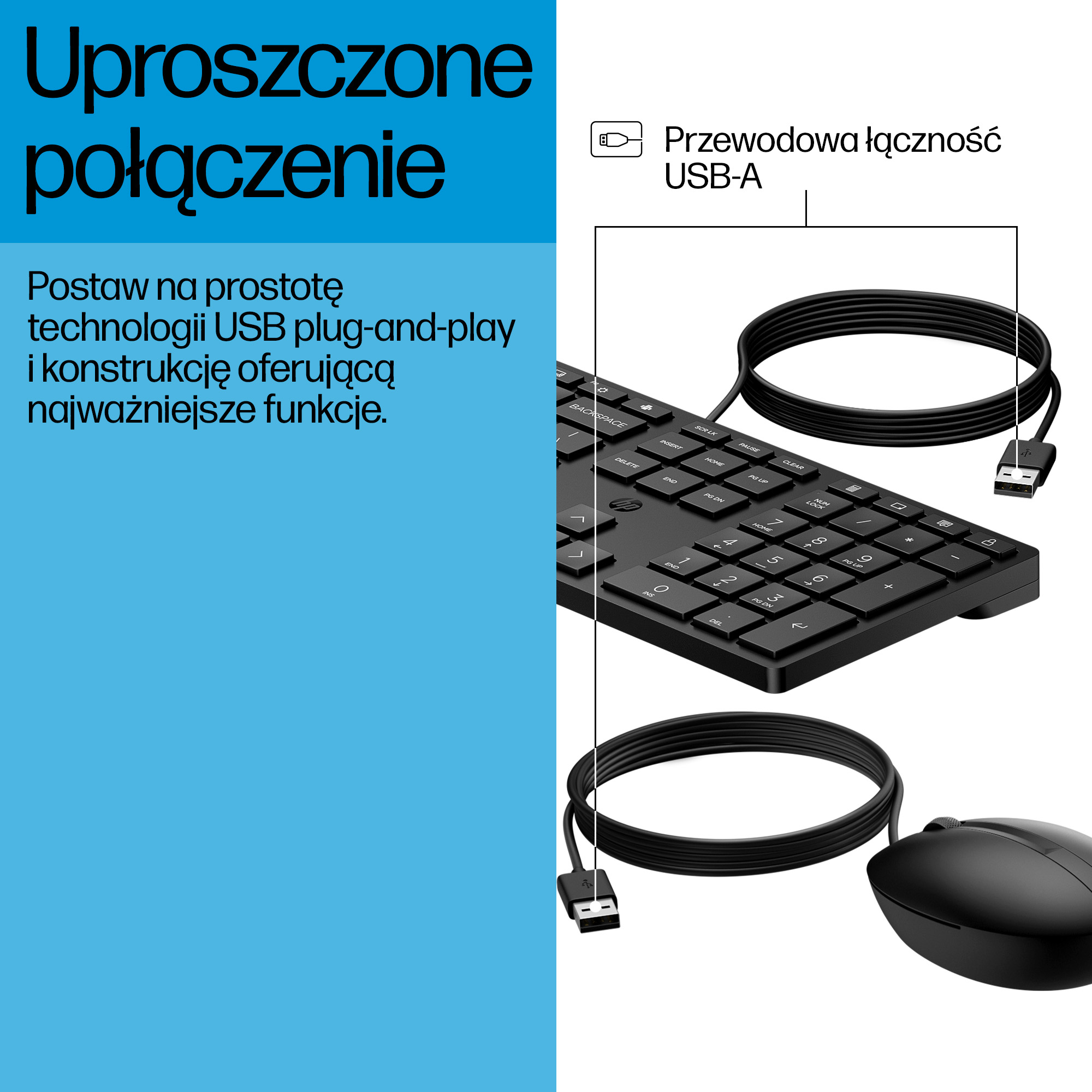 Pracuj wydajnie i zwiększ swoje codzienne możliwości dzięki niezawodnemu przewodowemu zestawowi klawiatury i myszy HP 320MK.