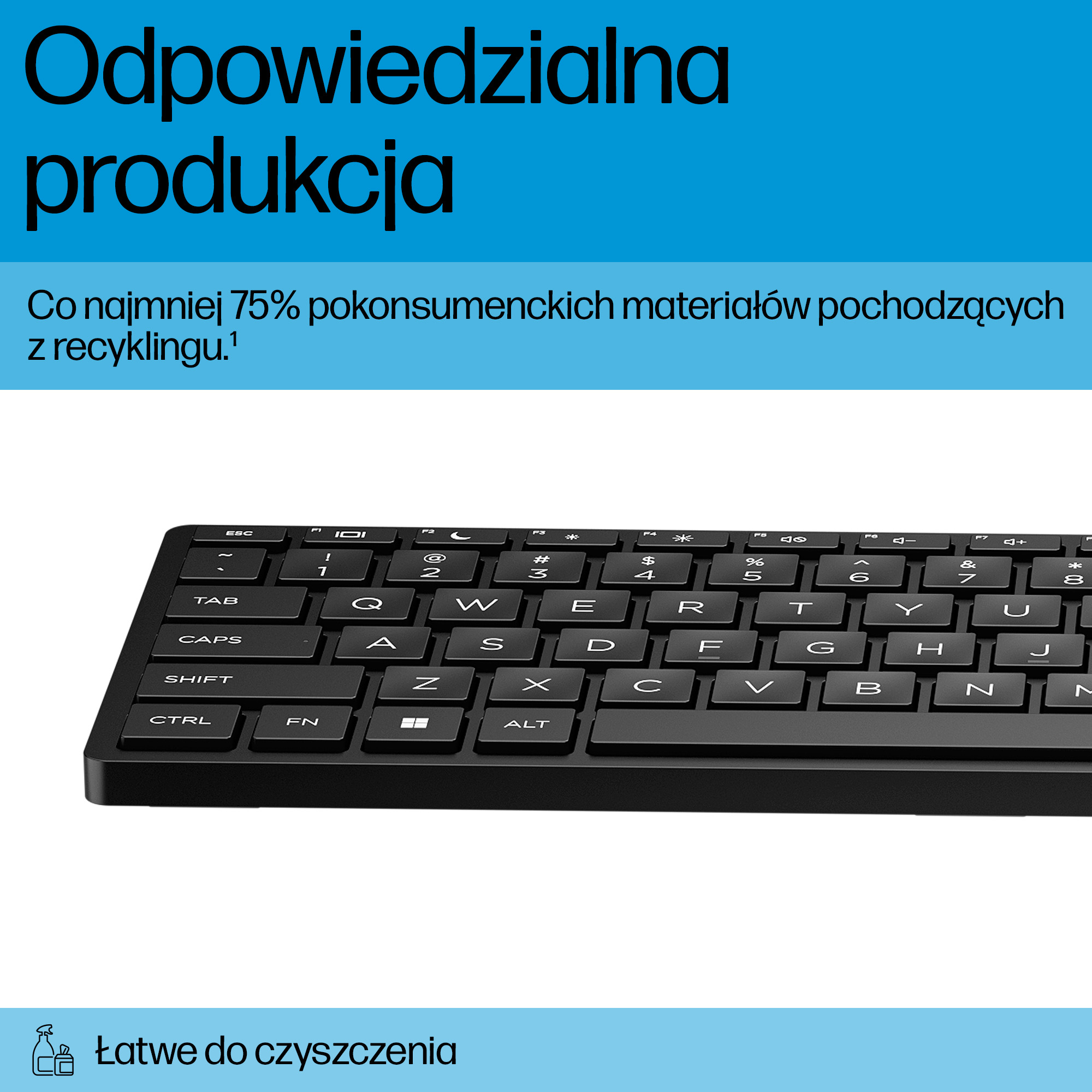 Ciesz się komfortem dzięki mniejszemu rozmiarowi klawiatury i niskoprofilowym, cichym klawiszom. Trzystrefowy układ zapewnia panel numeryczny, klawisze kierunkowe oraz pochylenie pod kątem 6° pozwalające na wygodne ułożenie nadgarstków. Obsługuj dokumenty dowolną ręką dzięki dobrze wyprofilowanej myszy.