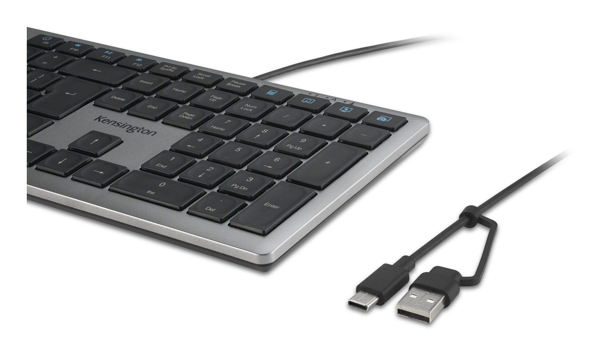 Oferując wysoką wydajność w wymagających warunkach, ta klawiatura jest wyposażona w 1,5 m (5') przewód (USB-C® z podłączonym adapterem USB-A), co zapewnia zerowe opóźnienie. Niezależnie od tego, czy piszesz, grasz, czy zajmujesz się skomplikowanymi zadaniami, możesz skupić się na działaniu bez obaw o żywotność baterii lub utraty sygnału.