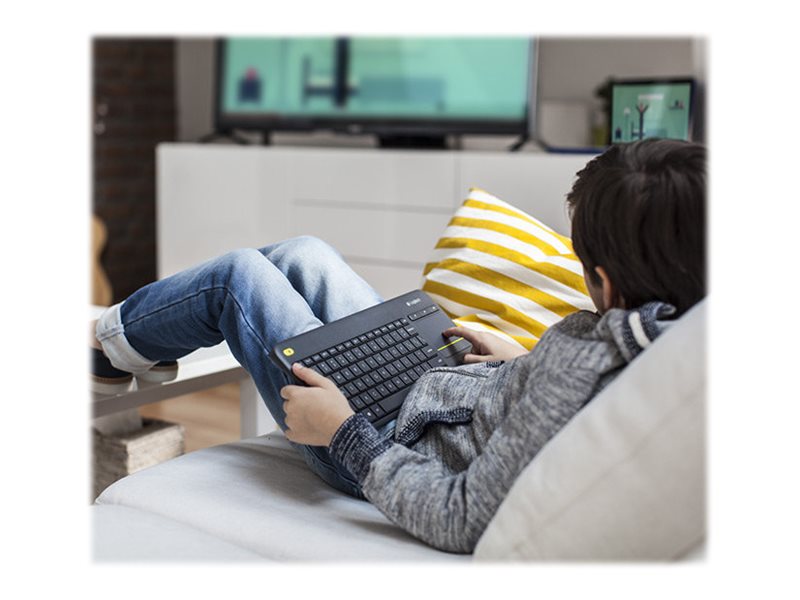 | Korzystanie z klawiatury K400 Plus jest wygodne od samego początku. Układ klawiszy zaprojektowano pod kątem zrelaksowanej interakcji z multimediami. Drugi przycisk kliknięcia lewym przyciskiem ułatwia nawigowanie i wybieranie dwoma dłońmi. Klawisze szybkiego dostępu działają natychmiast po uruchomieniu bez konieczności konfigurowania. Korzystaj z bezproblemowej obsługi komputerowego systemu rozrywki na ekranie telewizora bez konieczności użycia oddzielnej klawiatury i myszy. Wygodne, ciche klawisze i duży panel dotykowy sprawiają, że nawigacja odbywa się bez wysiłku. | |