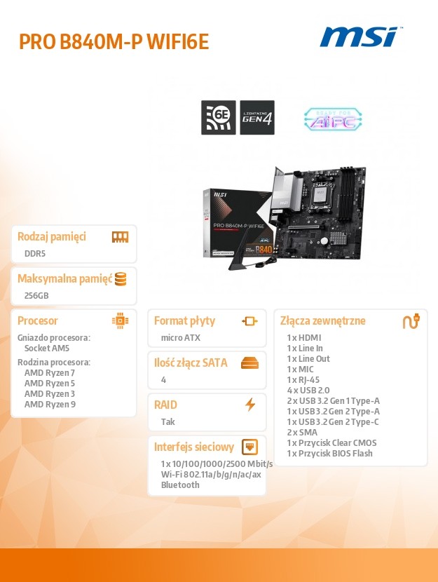 - Obsługuje procesory AMD Ryzen serii 9000/8000/7000 do komputerów stacjonarnych